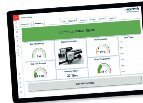 Closed and low maintenance hydraulic systems have a positive impact on availability. Unlike traditional hydraulic shafts, it has no dust that can enter the system, which means there is no need to frequently replace filters. It can also reduce downtime through status monitoring. Through integrated sensors and open interfaces, authorized entities can read and analyze data critical to faults and failures, and even perform predictive analysis through ODiN. The operational status index of the entire hydraulic shaft and each individual component related to the fault can provide effective indicators for process improvement and predictive maintenance.